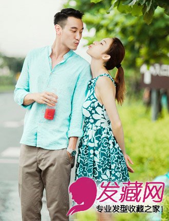 张俪嘟嘴扮亲亲,十分调皮,碎花连衣裙,清爽马尾宛若邻家女孩,王阳明浅蓝色衬衫,