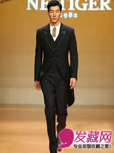 张亮的身材比例很显腿长,有刘海的时 的他感觉很韩国欧巴的感觉,无刘海的时候更显摩登气质。