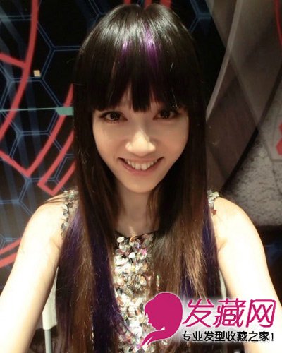 紫色的挑染让陈乔恩变身时尚小太妹,没有了清纯甜美感。
