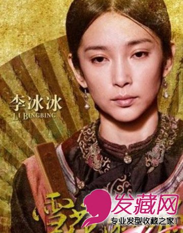 死穴:中分+盘发。这是因为李冰冰有个比较明显的美人尖所以别人能梳的中分她梳了就显得比较怪。没了长卷发的衬托缺点就更明显比如这张雪花秘扇的海报梳中分+盘发的李冰冰就显得比较苦情像个小老太太