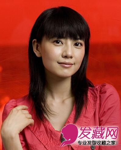 及眼的齐刘海突出大眼睛,但长发的不对称设计让高圆圆的脸型看起来有些圆润。