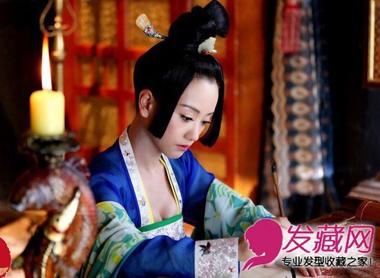 ,两鬓发髻修颜,执笔优雅大气。