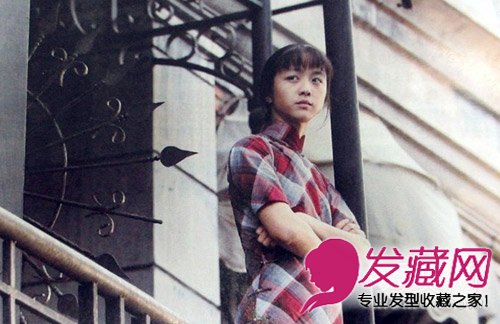 旗袍造型,朴素的格子,轻薄的刘海造型,临窗而立,忧愁自然而然就产生了。