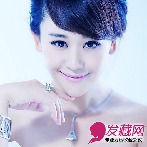 斜刘海搭配精致的盘发顿时变身轻熟女,优雅更显时尚范。