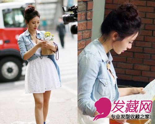 除了上面的清纯直发,柳岩的丸子头发型也是值得效仿的,如此清新可爱的发型将气质进行了很好的中和。