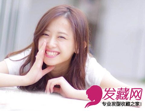 红棕色发色十分靓丽,披肩秀发搭在两颊,纯纯的笑容,天真烂漫治愈系美女范。