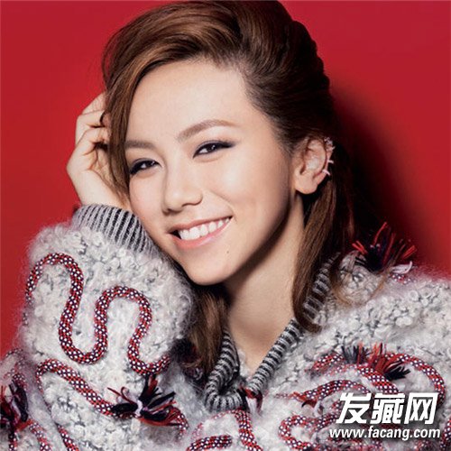 大侧分的刘海还能打造出甜美的感觉,刘海发尾处遮盖娃娃脸,修饰脸型,栗色的长发有种温暖的感觉,配上毛衣和甜美微笑,甜美中带着妩媚又有几分可爱。
