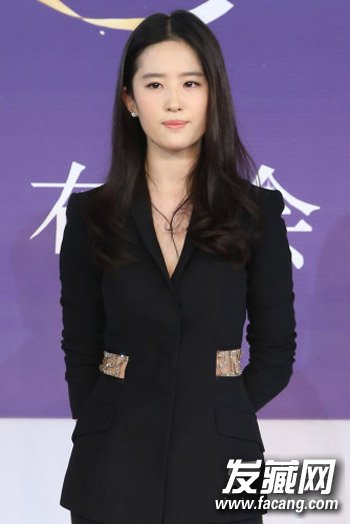 刘亦菲的皮肤很白,这种单调你的黑色反而将她衬得更迷人了。中分的长卷发很是自然清纯,发梢蓬松的卷发增添成熟妩媚之美。