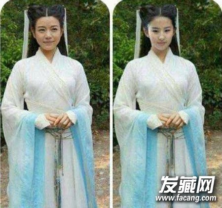有网友PS刘亦菲与陈妍希的造型,为陈妍希换脸,同样的发型脸小了就是不一样。
