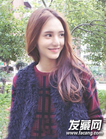 亮棕色的微卷发型,一种时尚优雅气息展露出来,吸睛的发色也凸显白皙的肤色,长发飘飘清新可人。
