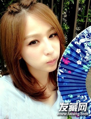 嘟嘴卖萌的王心凌,内扣的中长发温柔内敛十分显气质,把刘海在发顶夹起来清爽又甜美。