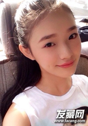 高扎的马尾更能突出林允的青春气息,all back的整齐扎发,浅浅微笑露出小酒窝和光洁的额头,黑色素发垂下,超显气质。