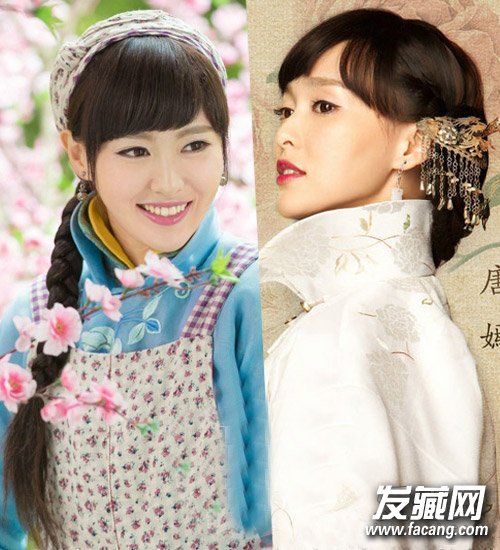这部民国剧中唐嫣的发型走大家闺秀style,麻花辫青春洋溢,盘发的古风韵味感觉很清秀。