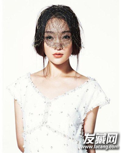 精致的新娘写真造型,将长发扎起来,类似波波头的样子,蕾丝头纱遮面,更显性感,两边留下一点发丝来更添女人味。