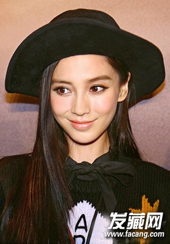 去年时装周上baby的造型也是有些与众不同。简单自然的长直发搭配凹造型的黑色礼帽,黑发飘逸带些层次,baby这身看似卡通的打扮隐隐透露着一点酷劲,清纯系长发也可以不走“甜心”路哦。