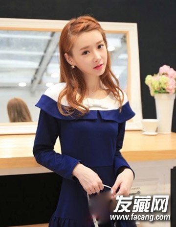 一款略显高贵气质淑女风式的最新女生造型设计,如果妹纸们对自己的脸型有十足的信心的话完全可以做上这样一款简单造型,半扎式的无刘海设计与温暖明亮的棕黄色染发优雅迷人。