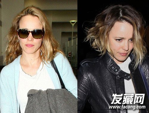 将头发剪短后的Rachel McAdams,还将头发染成了深浅棕色渐变的发色,前长后短的BOB头让Rachel McAdams年轻了不止10岁。
