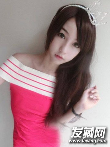 长发的Yoshi更多了一些甜美小女生的味道,露肩裙,侧边发型,戴上贵气发箍,典雅小公主。
