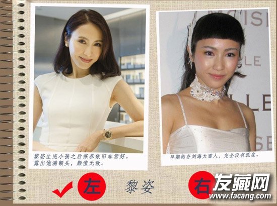 年过40 的黎姿露出额头最显气质了,颜值超高;早期僵硬的齐刘海造型完全没有美感。