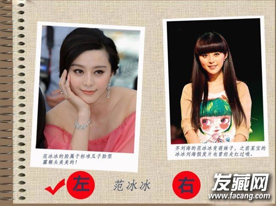 范冰冰的锥子脸就是要露出来来才好看,弄个齐刘海遮着简直就是浪费,虽然齐刘海让她看起来清纯了不少。