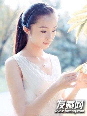 扎起来,柔顺的高马尾,戴上发箍更显清新利落感,白色的露肩连衣裙,清新女神范十足。