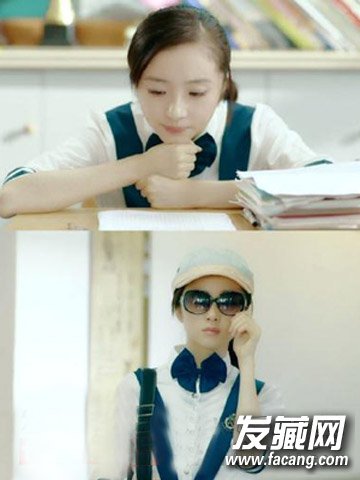 穿上校服的胡冰卿,化身个性女学生,白色加蓝色条纹设计的校服,清爽扎发,干净纯美。