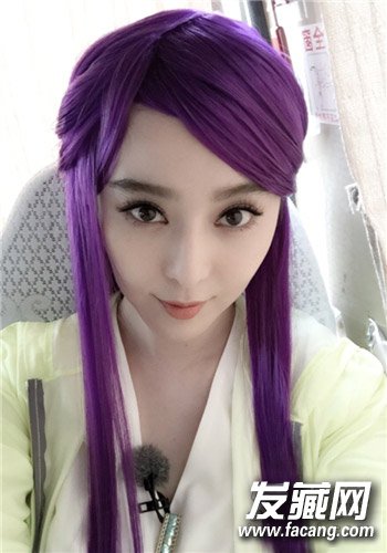在不久前参加完跑男的范爷,大胆COS起了圣斗士星矢中的雅典娜,头戴紫色假发的自拍一发布便激起千层浪!仔细看,范爷的假发还是比较精致的,层层叠叠的发束简约整齐,紫罗兰的发色衬得范爷更加白皙水灵了。