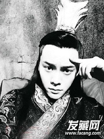 霸气丁隐剧照,黑白色调中更显杀气十足,绣花长袍,光洁的高发髻,冷酷帅气。