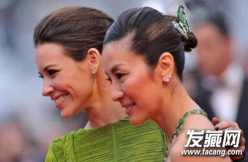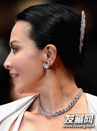 光洁的法式发髻非常优雅,但是略显沉闷,加入羽毛造型发饰的点缀,让整个发型更具亮点。
