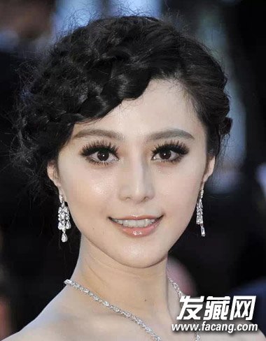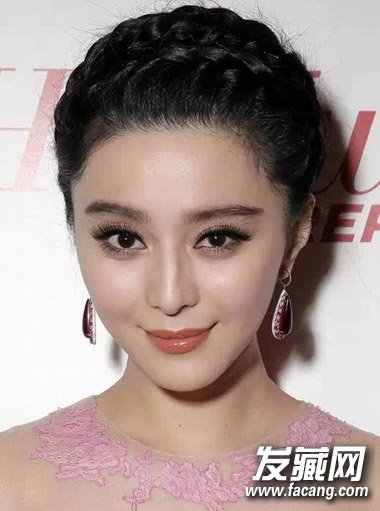 范冰冰真的很喜欢使用发辫来改变造型,让头发按照4/6分开,然后从刘海开始编起,做成假刘海以修饰额头,突出耳饰。
