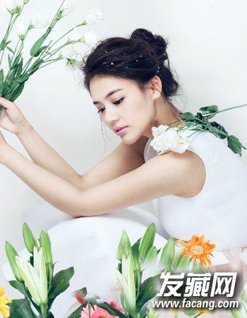 发型,加上小小的发饰的点缀,唯美的造型设计提升了整个造型的优雅与气质感,白色长裙仙气十足。