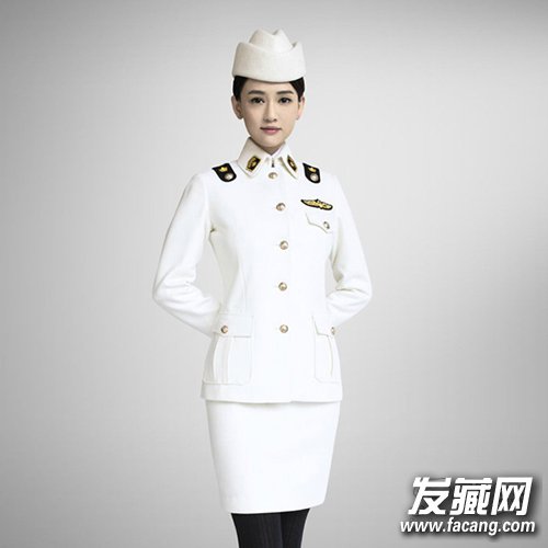 同样是盘起的头发,搭配一身白色的军装,端正干练。
