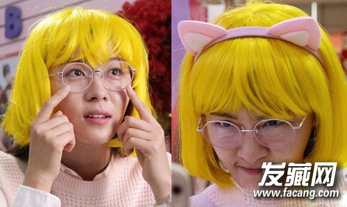刚刚还是温婉的女神,这边就画风突变,夸张的骚黄色假发、萌萌的猫耳朵,如此搞怪的造型让人不禁联想到了智苑姐姐之前的“名作”《秘密花园》,说好的回归女神呢?