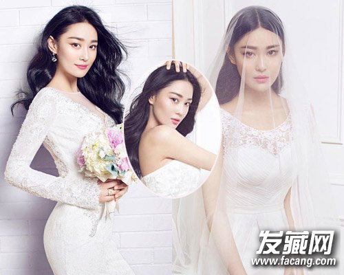 李晨旧爱张馨予婚纱写真造型,长卷发,粗眉妆,永远的御姐路线,中分披肩发加上头纱更添神秘性感,这也是很多女生拍婚纱照的时候会选用的发型。