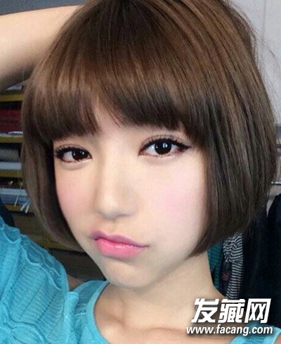 整齐的剪裁更显呆萌,加上些许自然的棕色