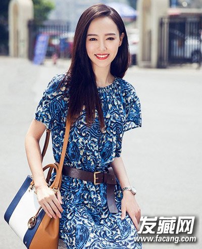 唐嫣的额头比较大,一般很少把额头全露出来,这样的偏分发型,棕色