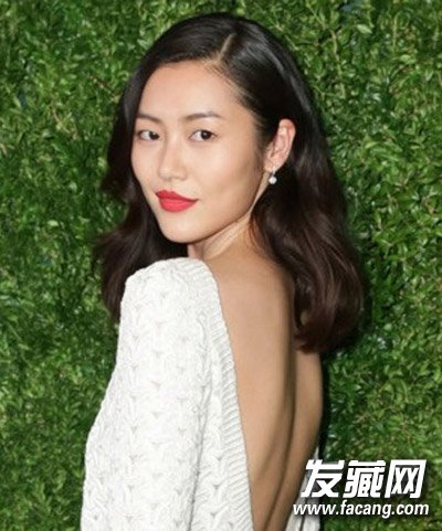 刘雯这款卷发时尚感十足,大卷使得头发看起来非常浓密。浓密的过肩卷发偏分,一侧塞到耳后,露出优美的侧脸,回眸一笑,妩媚至极。