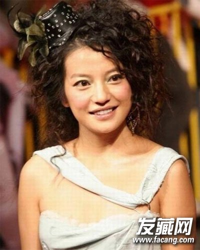 小卷发搭配了一个莫名的发饰,有点像“小丑”