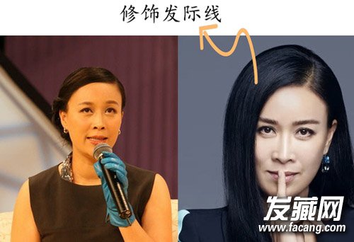 如右图,孙俪的一束头发遮住了侧边的发际线,调节了过宽的额头。