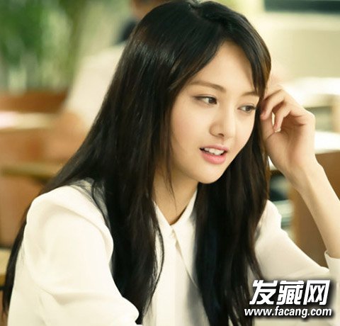 郑爽长发发型,纯黑色长发自然披在肩头,更显校花气质,白色衬衫搭配清纯甜美,学生装真的超赞。