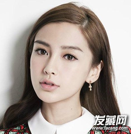 简约的长直发偏分夹在耳后,露出baby的精致五官,自然的棕色染发亮泽柔顺,如此简单的造型都满是女神感。