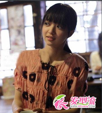 用简单的束发把头发挽起来,不用过多的打造,让这款直发可爱发型变得自然,齐刘海的搭配显现出灵动的大眼睛。