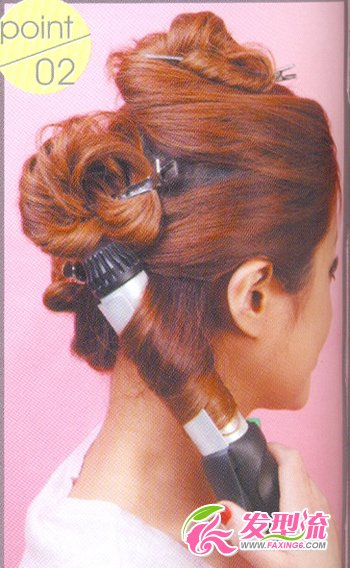 2将头发分成三层,从最下层开始分层用电卷棒将整体打造出内卷的卷度。