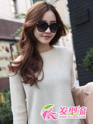 外翻的卷发令发型显得更加时尚,前后放置的卷发充满着女人风韵,很是迷人。黑色墨镜的装饰,可以减小脸部面积又能为造型增加酷感。简单的白色系上衣突显出粟色染发,令皮肤更加白皙,韩范儿气场十足。