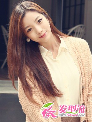 在黑色发丝中注入粟色染发令造型更显时尚,微烫的发丝尽显女性柔美。柔软的发质垂落肩上,营造出迷人的浪漫气息。当下最流行的裸色系针织外套搭配职业裙装,优雅的气质中显露出都市 OL的干练风格。