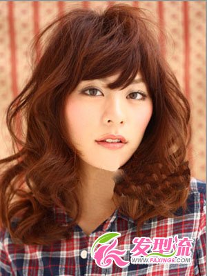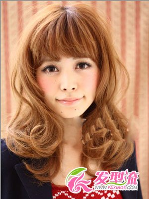 覆盖式带点弧度的厚重刘海与对称的大号波浪卷发,都很好的修饰了自然卷诠释了女性甜美可爱的质感,整体头发也没有经过太多的繁琐打造!只需要将秀发修剪后利用染发与烫发打造出柔美的卷度就能够提升你的时尚品味啦!