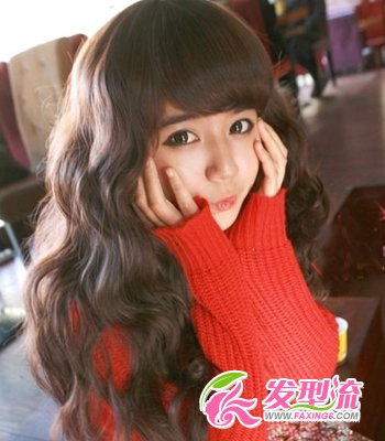 一袭长卷发如瀑布般倾泻而下,充满了浪漫唯美的童话气息。波浪式的大卷,搭配齐眉的侧分刘海,更好地突显出大眼小脸效果,整体造型就像芭比娃娃一样卡哇伊,怎能让人不动心呢?