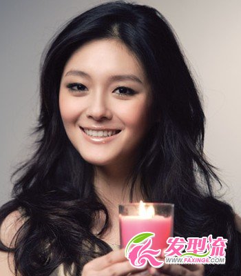 中分的黑色烫发制造出大女人气质,卷度堆积在肩上,看似凌乱更显随意。黑色的发丝保持着原有的纯真,令人着迷。