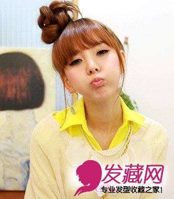 不得不赞叹,这款花苞头确实够漂亮、抢眼。将马尾发束分成几股再编织出花苞状,比起丸子头更容易得到大家的观众。因为此款发型的打造重点同样是清爽效果,所以刘海不宜修剪得过于厚重,额际留落稍长的发丝,展现丝丝风情。