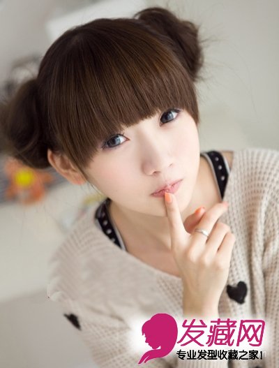 齐刘海的双发髻是既可爱萝莉而且又童真味道十足。少女的你快试试哦!